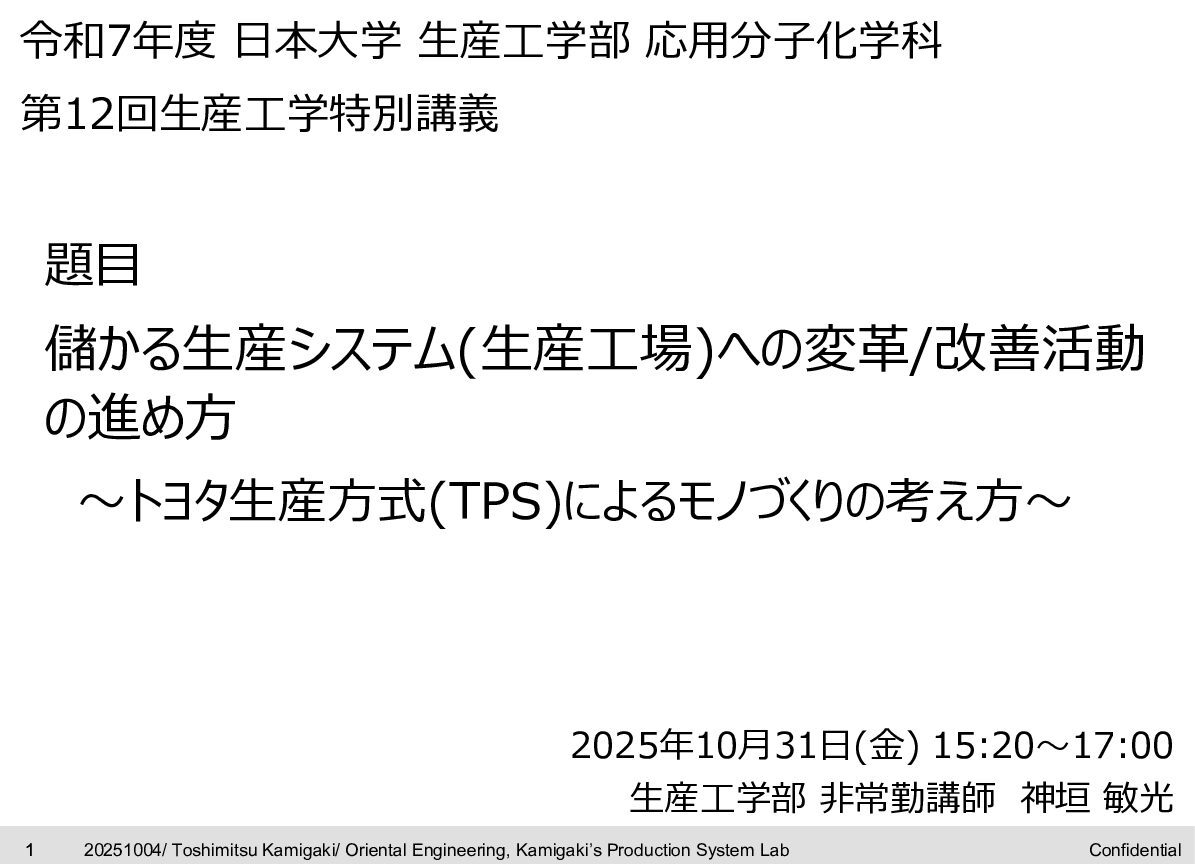 I gave a special lecture on industrial engineering at Nihon University yesterday (October 31, 2025).